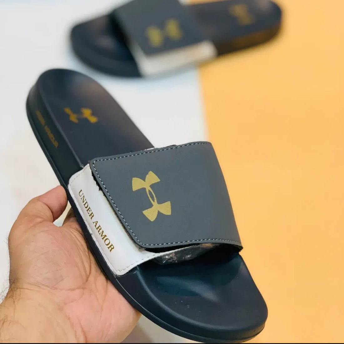 UNDER ARMORE GREY SLIPPERS (ADJUSTABLE)